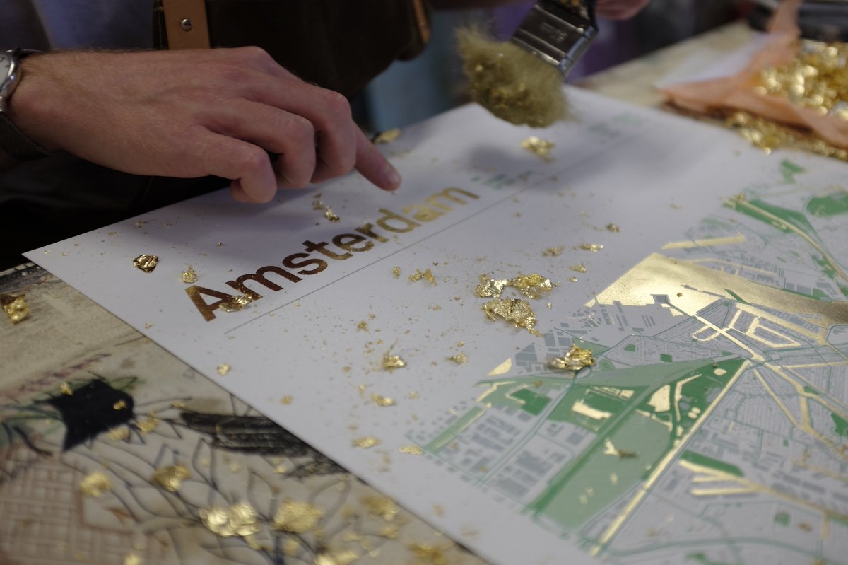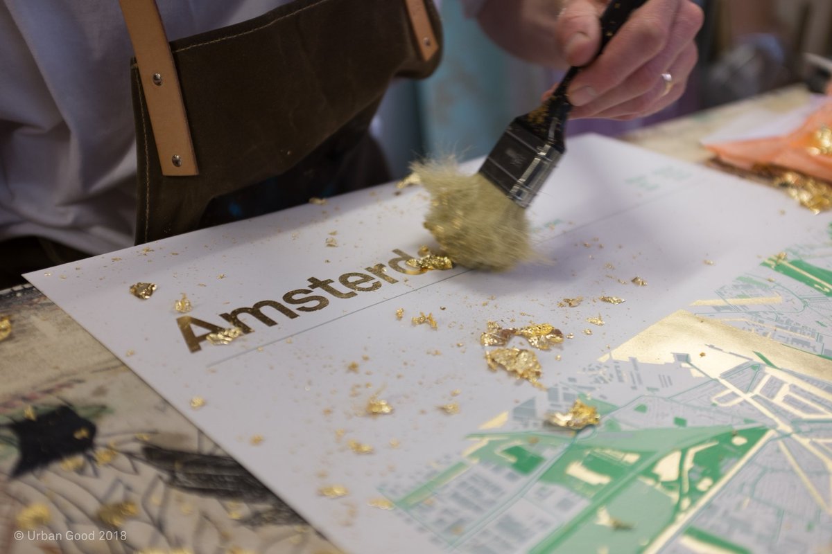 @urbangoodcic make some lovely#maps of#Amsterdam, using#goldleaf and#ScreenPrinting. Sorry for all the #, but this is too good not to share far and wide. Get involved and learn more about them here: https://www.indiegogo.com/projects/the-green-map-of-amsterdam-camping-family#/ …pic.twitter.com/8jKqIGOkZK
