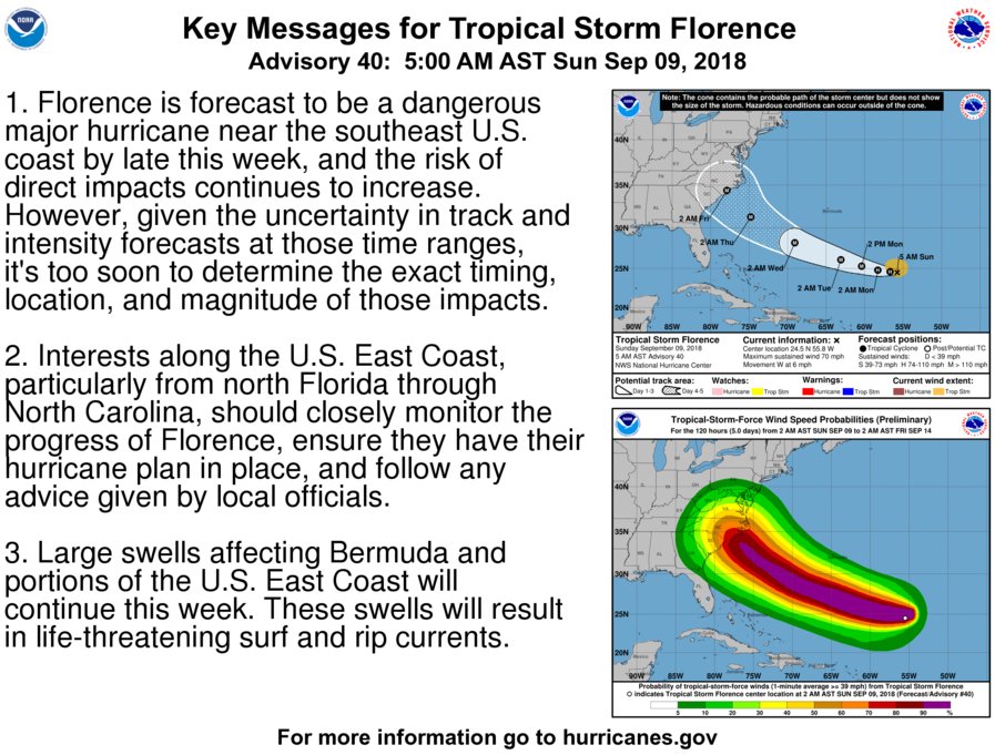 #Florence remains a tropical storm this morning with 60 kt winds, just shy of hurricane strength. Florence is forecast to quickly strengthen over the next couple of days though.pic.twitter.com/p4FC2yTnyg
