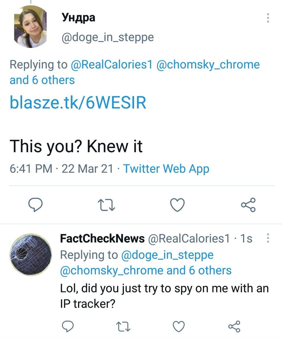Now she's trying to terrorize and intimidate people with the information she's gathered by publishing their location, network & device, because when you're working for the world's largest sponsor of terrorism, why not terrorize a few folks at home too.https://twitter.com/RealCalories1/status/1374157664838676494?s=19 …