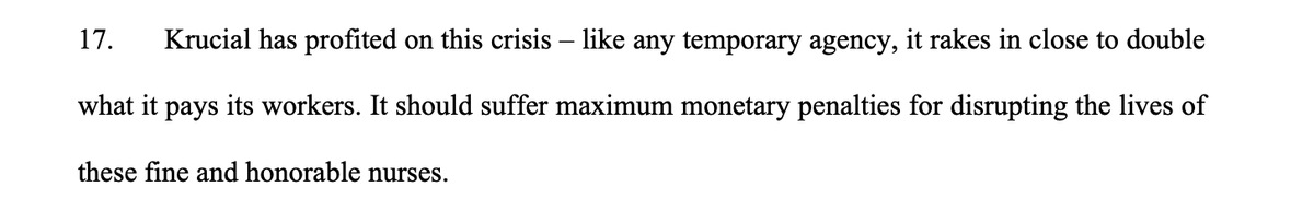 The firm, Krucial Staffing, was allegedly working on behalf of the NYC Health and Hospitals Corporation. The suit suggests NYCHHC paid Krucial nearly twice what the firm paid its nurses—in other words, around $20-26K. Per week. Per nurse.pic.twitter.com/JwY0lwF2o0