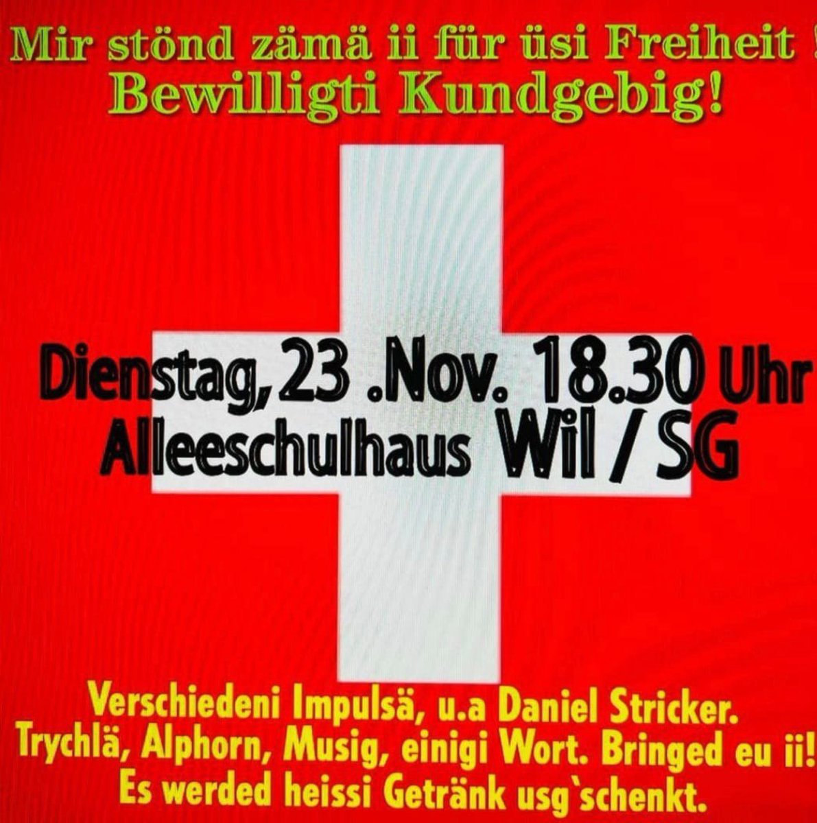 DEMO IN WIL SG: BITTE TEILEN! Ja, ich bin auch müde. Egal! Es wird gemütlich, grossartig, fast familiär.
