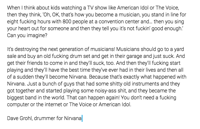 vc feels more and more like a Shark Tank trap every year. reminds me of this dave grohl quote i love:pic.twitter.com/7kWKINGqnp