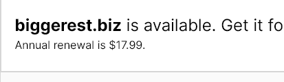 The owner replied and said the domain "is in active use for my company" which is... amazing. It's my favorite website. http://Big.biz  We wanted to buy it to rename the studio (obviously keeping the website as-is), but alas we'll stick with No Small Things. https://twitter.com/DanielZarick/status/1259294334140190724 …