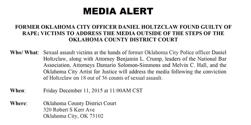 @AttorneyCrump says the victims in the#DanielHoltzclaw trial will address the media today.@OKCFOX@OKCART4JUSTICEpic.twitter.com/vtb4wX0hxg