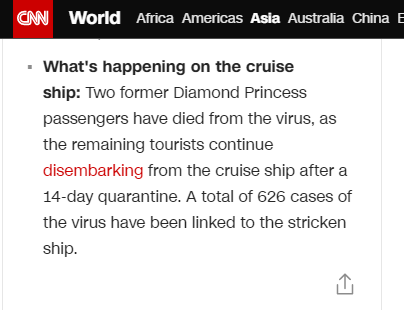 Not 0 deaths. Nothing to link to, this is the full story: "2 Diamond Princess passengers have died from the virus, as remaining passengers continue disembarking from the cruise ship after 14-day quarantine. A total of 624 cases of the virus have been linked to the stricken ship."pic.twitter.com/bc1Ksq1XVj