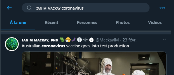 Try not the direct handle. Imagine if someone reads about Ian in the news, and wants to find him? They will look for “Ian Mackay virologist” or “Ian Mackay Covid” or “Ian Mackay coronavirus”