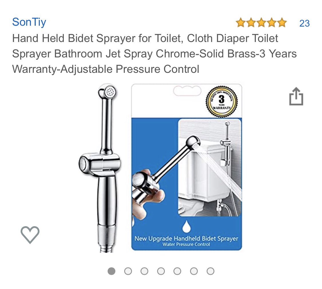 this Hand Held Bidet Sprayer for Toilet, Cloth Diaper Toilet Sprayer Bathroom Jet Spray Chrome-Solid Brass-3 Years Warranty-Adjustable Pressure Control https://www.amazon.ca/dp/B07ZB235QV/ref=cm_sw_r_cp_api_i_QtKIEb8XFWD71 … (hope the link works outside of canada)pic.twitter.com/4L7G3lDs6t