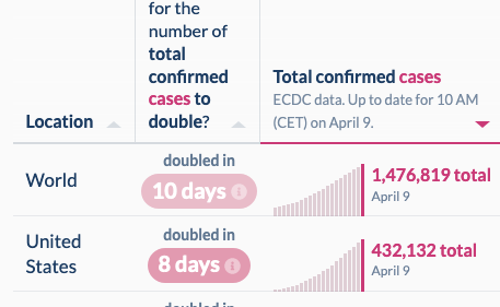 That's a well polished site! And yep, 8 days for num cases to double for now... Deaths are most accurate metric, but also most lagged metric.pic.twitter.com/gnAKajjM5W