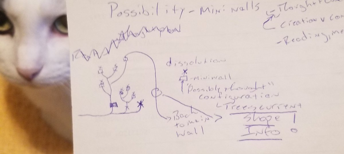 This is the shape of the thought pool. The area of possibility where actions and ideas are chosen. Like a river delta pulsing with energy, searching the circuits for a configuration that escapes and hits the main wall. But every pulse does, some just die after pool at Main Wall.