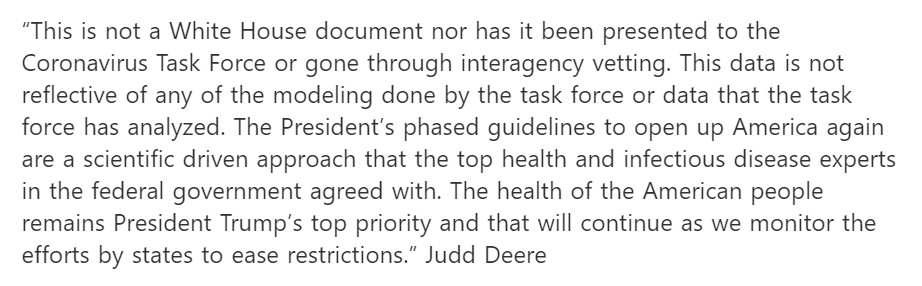 The CDC and White House is now denying any involvement in that projection floating around.https://twitter.com/saraecook/status/1257359456658247686 …