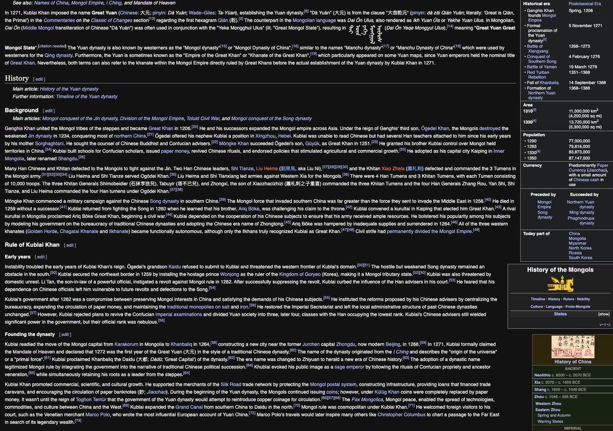 Great Yuan (Chinese: 大元; pinyin: Dà Yuán; Middle Mongolian: ᠳᠠᠢ ᠦᠨ ᠦᠯᠦᠰ (note, this is flipped on its side, Mongolian is a script that is top to bottom), Dai Ön Ulus, literally "Great Yuan State"pic.twitter.com/WXYW471uky