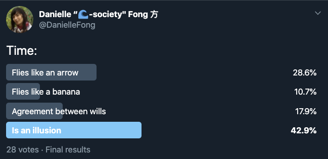 5 of my followers believe that time is an agreement between wills! *5* is a very big number actually! Five sets are, delightfully, just enough, if you believe the Banach-Tarski theorem and the Strong Free Will theorem to inflate a universe! https://link.springer.com/chapter/10.1007/978-0-387-75477-2_20 … https://twitter.com/DanielleFong/status/1258815677231742978 …pic.twitter.com/vKIVKPKw3E