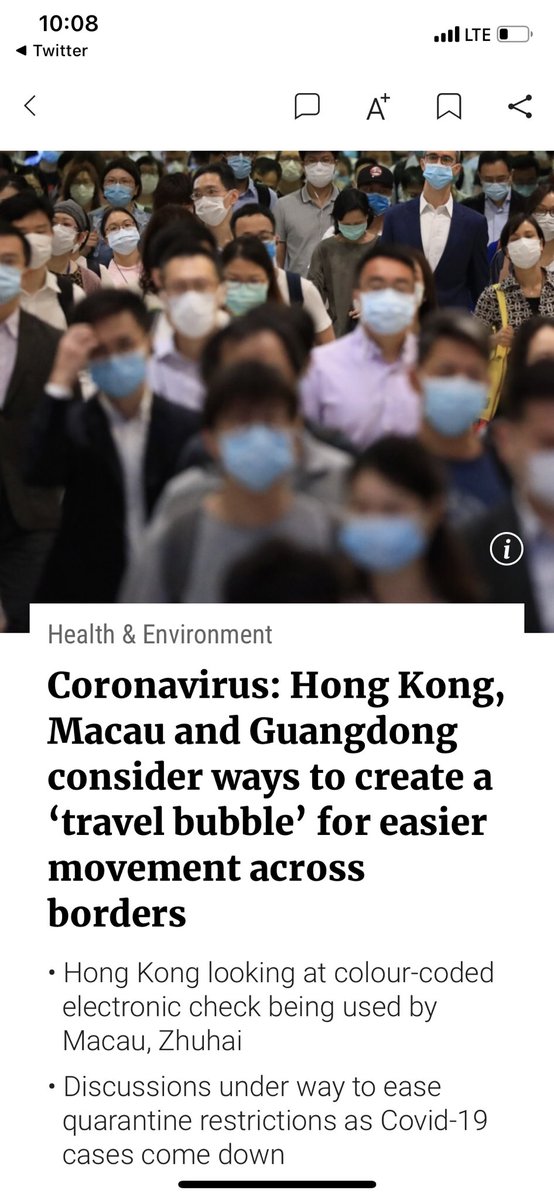 Dispatch from the South China Morning Post (semi independent publication from Hong Kong) Note: (a) Sensible, tentative policy, exploration vs fire from the hip. (Travel bubble to nearby cities, with much less virus than in the USA now) (b) Test and trace actually possiblepic.twitter.com/e985IOYhUN