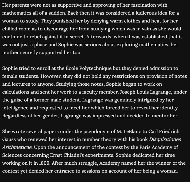Sophie Germain https://www.famousmathematicians.net/sophie-germain/ pic.twitter.com/HuIgpSAQk1