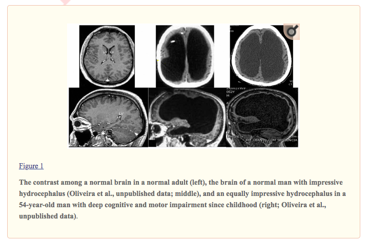 Many cases of humans that are by all appearances normal but missing massive volume of brain parenchyma like the middle figure here.pic.twitter.com/u8zt9G2tDg