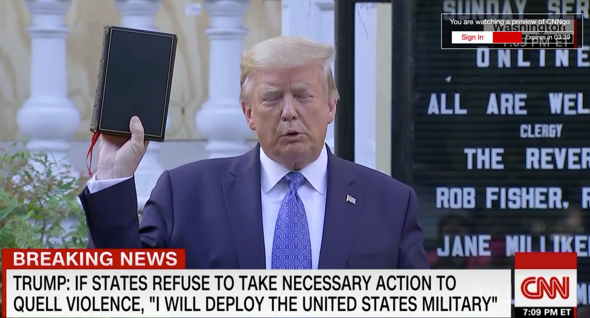 How do so many misunderstand this as some signal to the religious right? This gesture is aimed at the protesters who tried to burn this church last night. It’s a dare — a provocation.https://twitter.com/nycjim/status/1267594676154105856 …