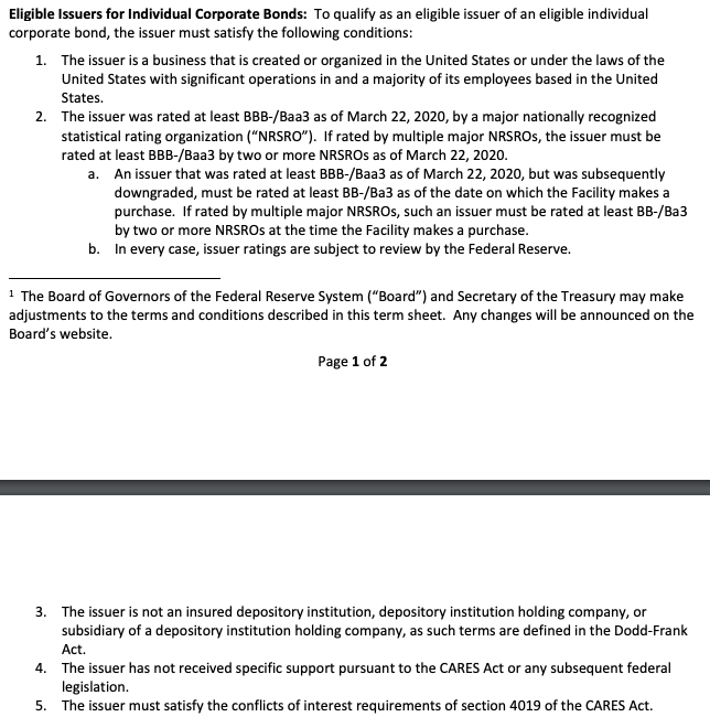 Has anyone made a list of these Corporate Bonds Issuers that would Qualify for the Fed Program, and if not, maybe we can make a bitcoin bounty on this or something. (Open source market research idea.)pic.twitter.com/n2CPHXrt2U