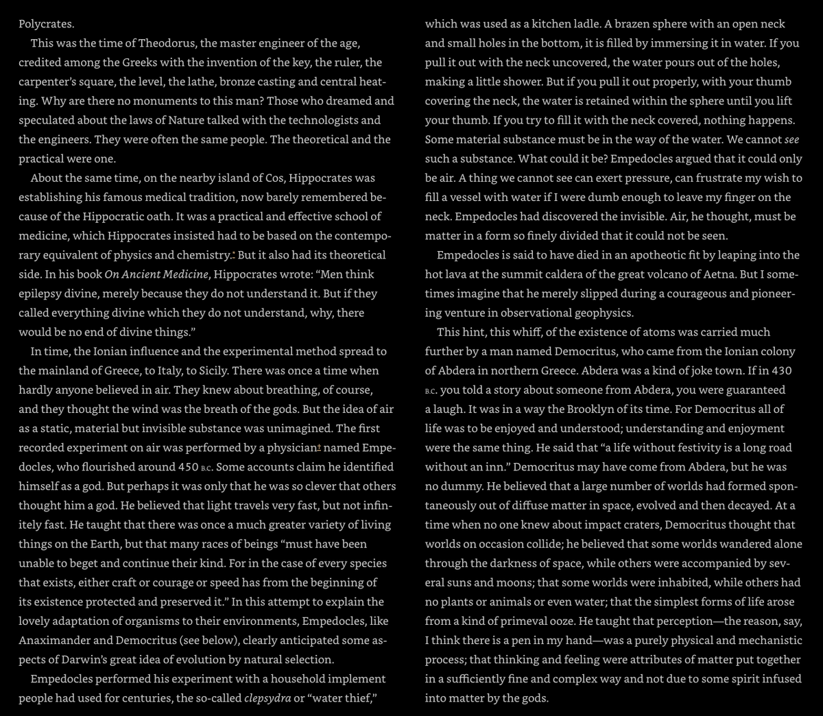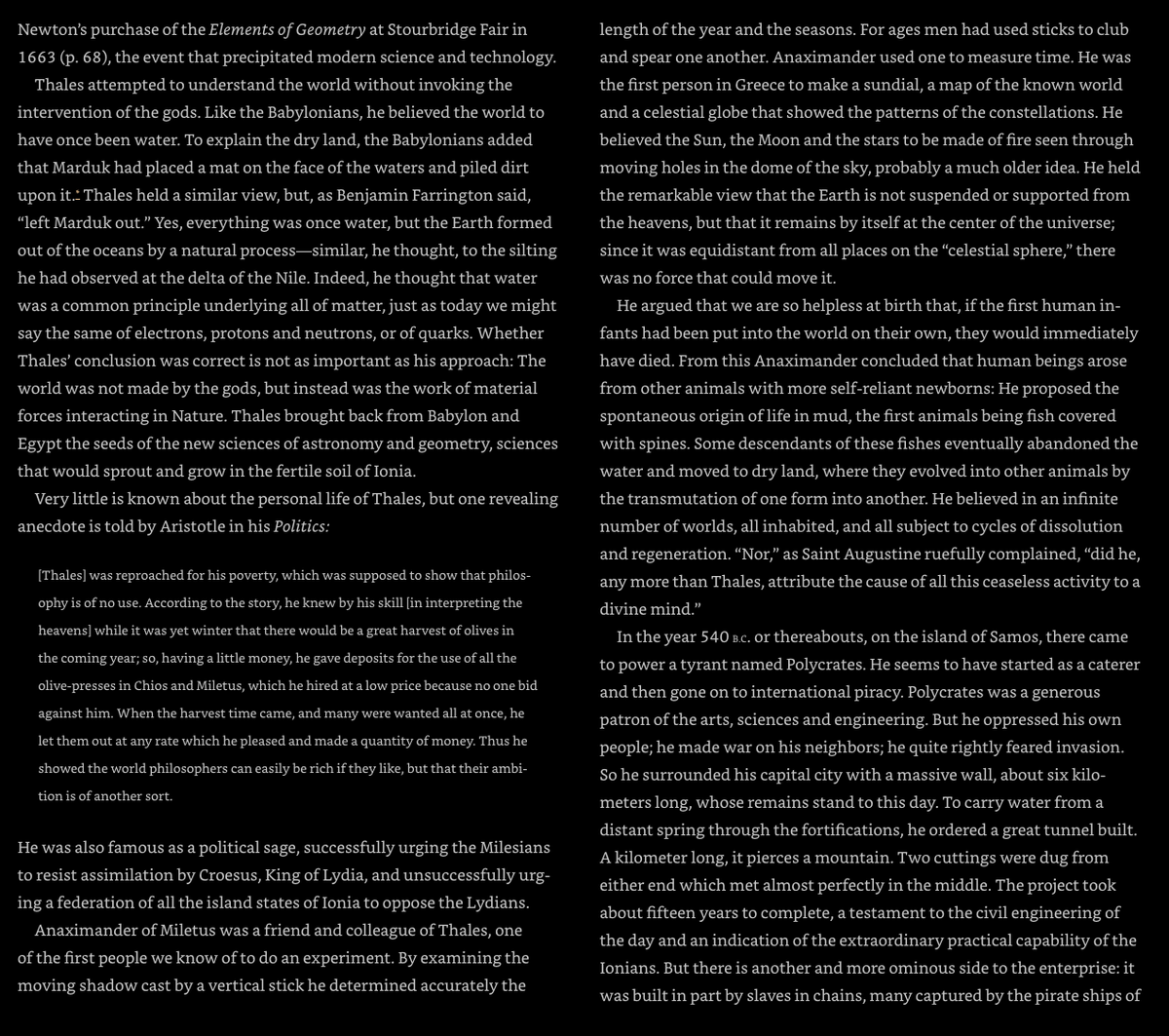 Carl Sagan makes the case in Cosmos that scientific progress slowed down after its successes made more powerful and profitable market economies, with a slave class for labor. He suggests that science is a manual endeavour, and when you remove yourself from it progress slows.pic.twitter.com/55osfPMoMM