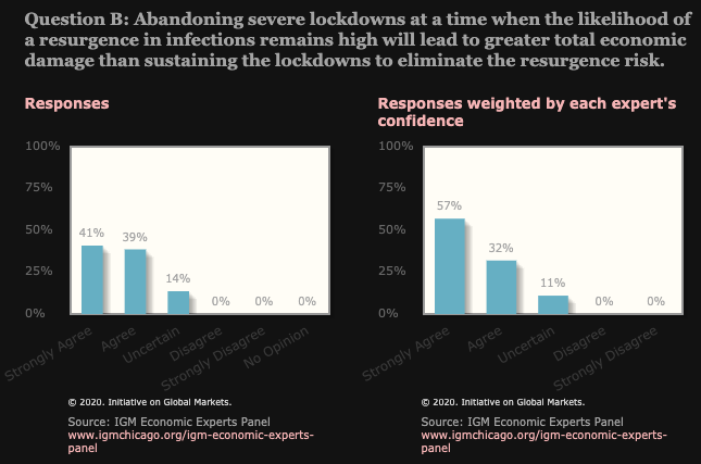 look at this survey of economists: they were all in agreement that abandoning the lockdowns prematurely would cause more economic damage, and then we went and did it anyway. http://www.igmchicago.org/surveys/policy-for-the-covid-19-crisis/ …pic.twitter.com/LQZt86W2rq