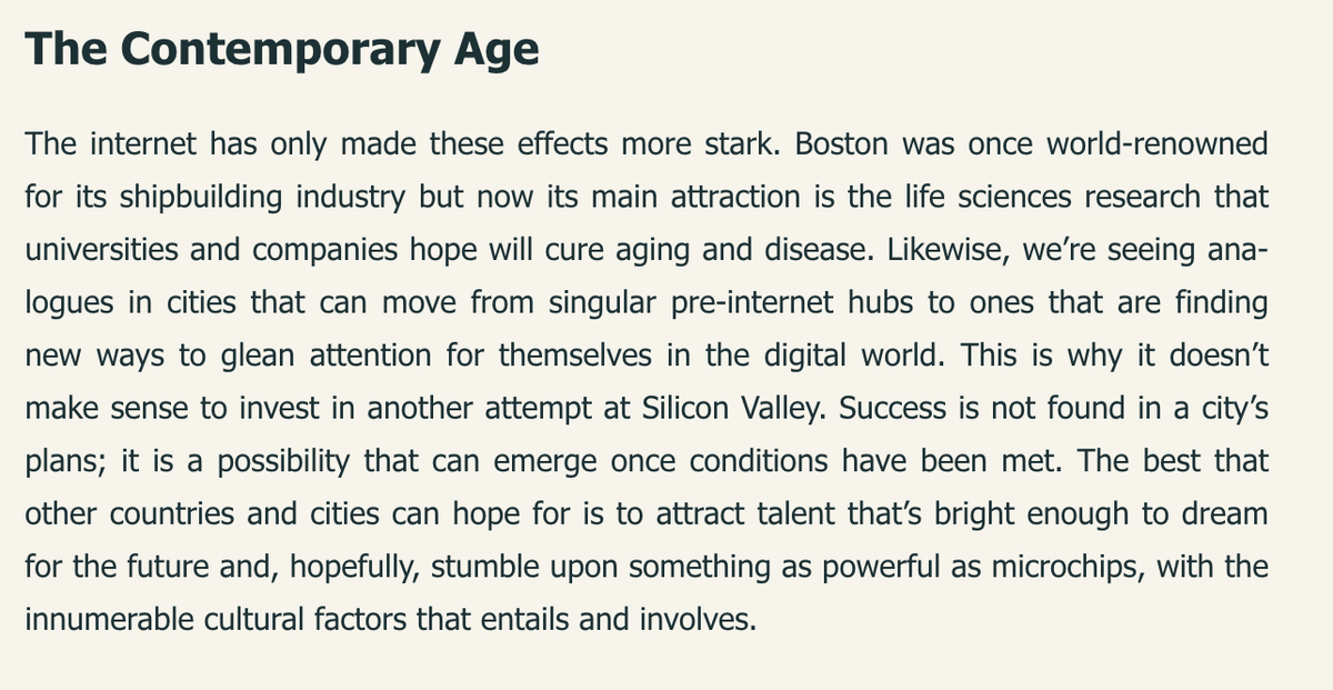 @paulg's cities & ambition http://www.paulgraham.com/cities.html Why to Move to a Startup Hub http://www.paulgraham.com/startuphubs.html … it's more than the built physical space that makes a city - it's the dynamic social, intellectual, cultural & economic environment3 replies 2 retweets 10 likes -
