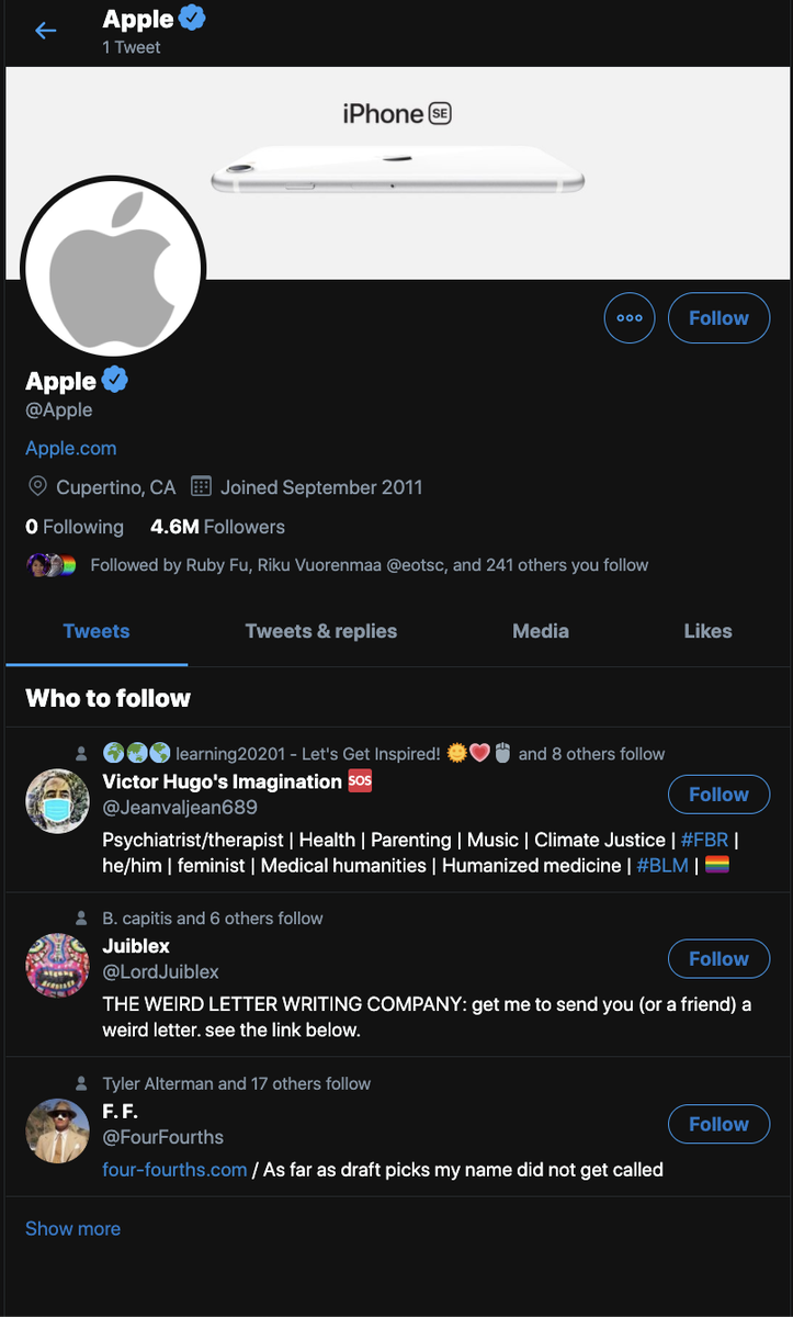 Apple's Twitter account now blanked.pic.twitter.com/UwIKbC4up7