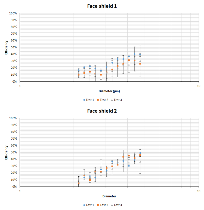 Linsey MarrVerified account @linseymarrFollowing up on mask results I posted on Friday, face shields on manikins are worse at inward protection for 2-5 micron aerosols. For masks, we saw at least ~50%. Face shield #2 has some flaps on the side. Consistent with https://ncbi.nlm.nih.gov/pmc/articles/PMC4734356/ … Thanks@isjinpan@charbelEharb pic.twitter.com/vKZUh0JRDV2 replies 1 retweet 2 likesShow this thread