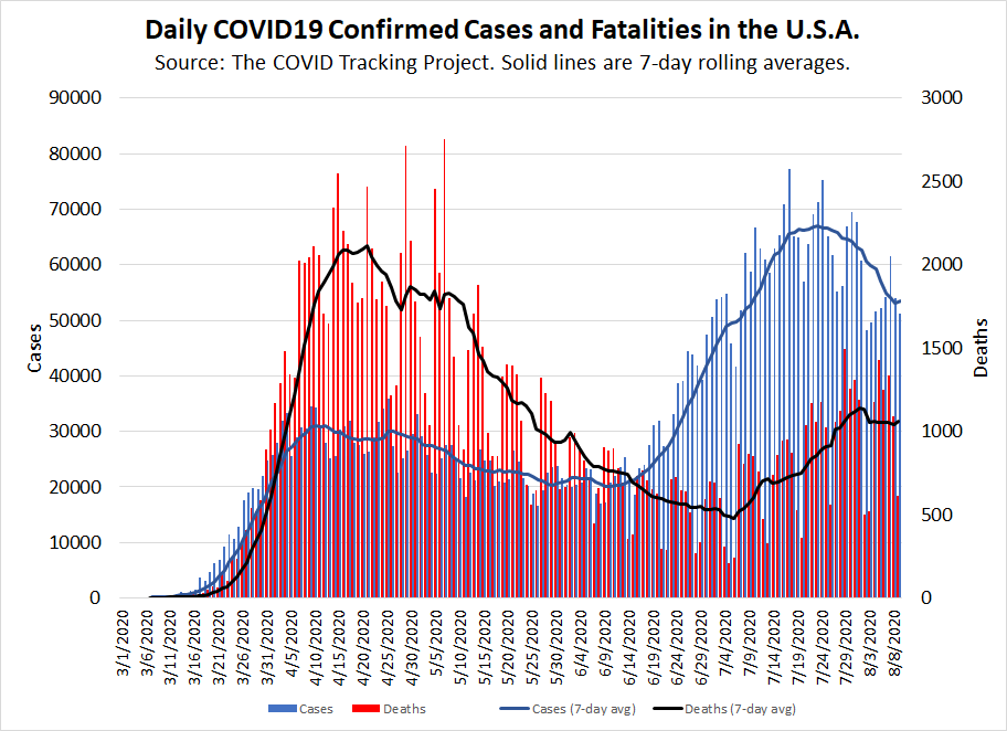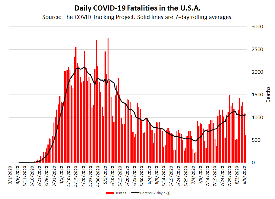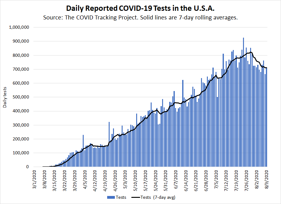 #COVID19 in the #USA Deaths have plateaued this week, as one might have expected given the recent decrease in cases and positivity rate of tests. Tests have decreased recently, and that's not a good sign. Some may be due to hurricane-related bottlenecks...pic.twitter.com/1hXJnqx2Sn