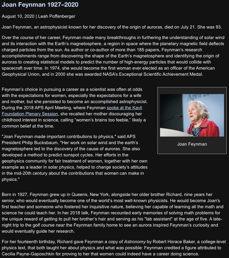 Joan Feynman (1927–2020)
