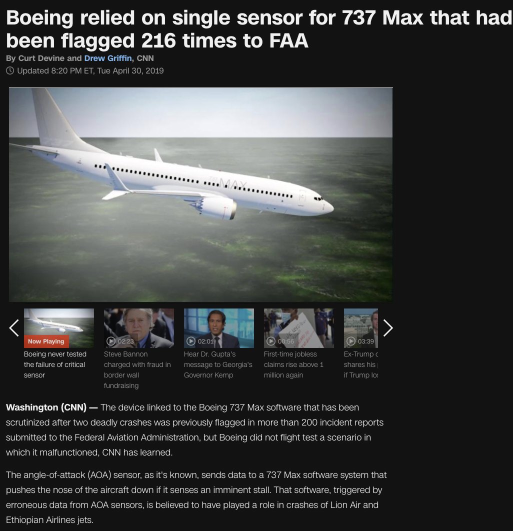 the same system: -developed a fundamentally unstable airplane, the stretched 737-max, requiring active control -only had one sensor for active control -redirected flights through wuhan (reduced pricing!) -fills middle seats today & you're worried about maximising *paperclips*?