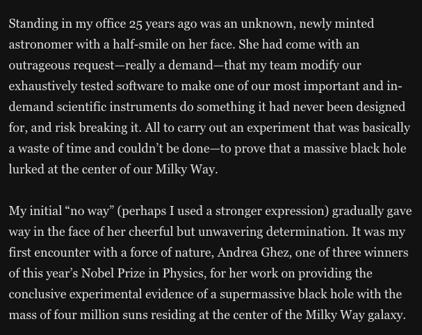 love this https://www.scientificamerican.com/article/how-andrea-ghez-won-the-nobel-for-an-experiment-nobody-thought-would-work/ …pic.twitter.com/2ifSZUsmY1