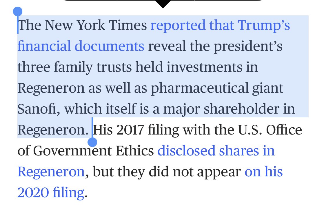 When I heard that Trump received an experimental monoclonal antibody cocktail, I was very worried about his condition. Why else would you take a chance with a drug like that on the President of the United States of America? I guess I didn't consider all of the possibilities.https://twitter.com/SethAbramson/status/1314767953892724737 …