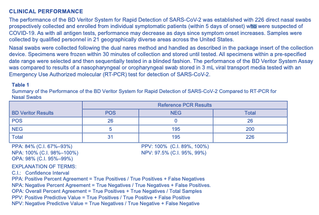 The BD Veritor system seems to have 97.5% specificity. If it were just 1 - (0.025)^2 yeah that's pretty close to zero. btw: this new study shows that PCR can have a lot of false negatives later in the course of the disease https://twitter.com/DanielleFong/status/1327383053379964929?s=20 … https://www.fda.gov/media/139755/download …pic.twitter.com/hstAlo2U3c