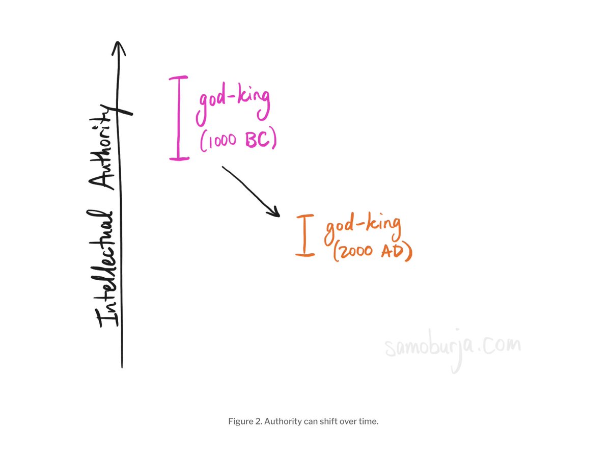 Would you trust a Sumerian god-king to prove or disprove string theory? Different social roles such as bureaucrat, scientist, or king have different levels of intellectual authority over time and place. Read my new essay on this topic here: http://samoburja.com/intellectual-authority/ … 1/n