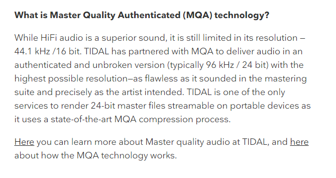 Hey @TIDALSupport so... you are delivering master how, exactly? You are saying that "TIDAL has partnered with MQA to deliver audio in an authenticated and unbroken version (typically 96 kHz / 24 bit)".pic.twitter.com/1KP7ICgKd7