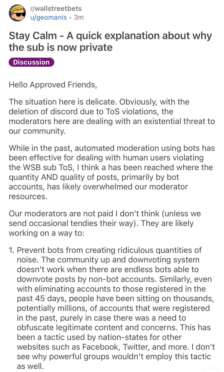 r/wallstreetbets latest update from mods: pic.twitter.com/Gq7ZYzza8A