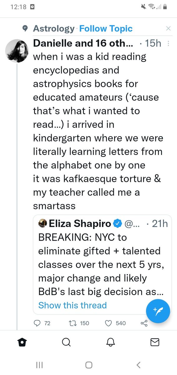 when i was a kid reading encyclopedias and astrophysics books for educated amateurs (‘cause that’s what i wanted to read…) i arrived in kindergarten where we were literally learning letters from the alphabet one by one it was kafkaesque torture & my teacher called me a smartasshttps://twitter.com/elizashapiro/status/1446435627495530496 …