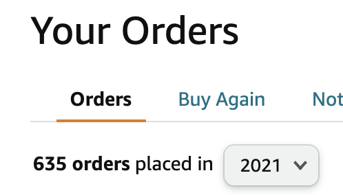TIL that I have placed an Amazon order every 3.7 days this year on avg.