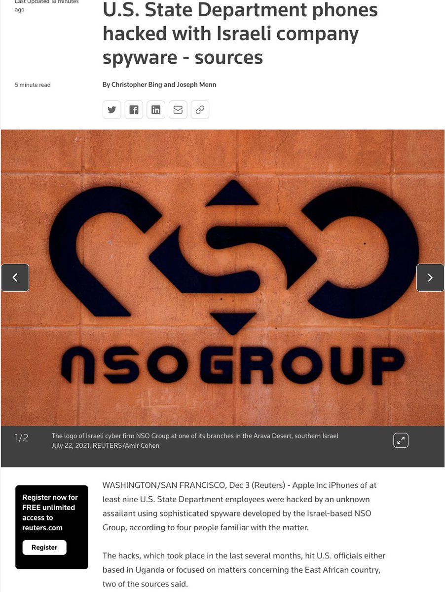https://www.reuters.com/technology/exclusive-us-state-department-phones-hacked-with-israeli-company-spyware-sources-2021-12-03/ …pic.twitter.com/3LkiX52mNV