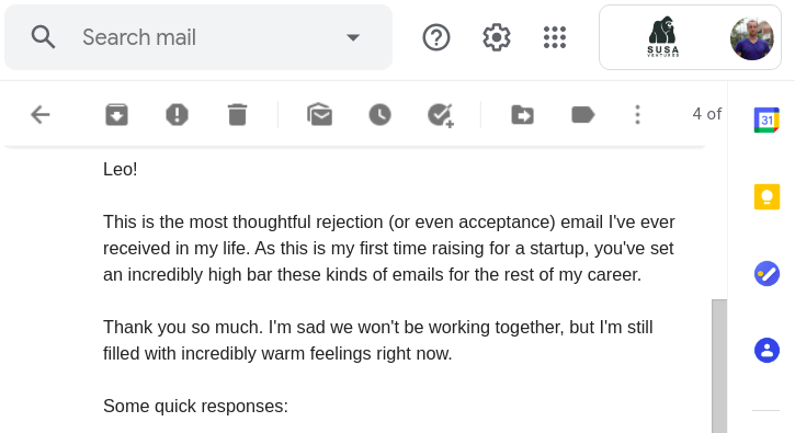 Common advice I got when I became a VC: "Don't sent founders direct feedback. They'll resent you and won't work with you in the future. Be vague to maintain the option to invest later." Me (internally): "Lame. People deserve good feedback. Let's just see what happens.." Result:pic.twitter.com/SDj4zfEoAt