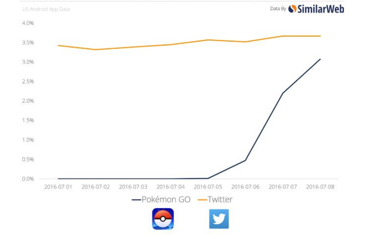 'Pokémon GO' is about to surpass Twitter in daily active users on Android. http://www.forbes.com/sites/jasonevangelho/2016/07/10/pokemon-go-about-to-surpass-twitter-in-daily-active-users/#28a344395174 …pic.twitter.com/bjn5qbpjmg