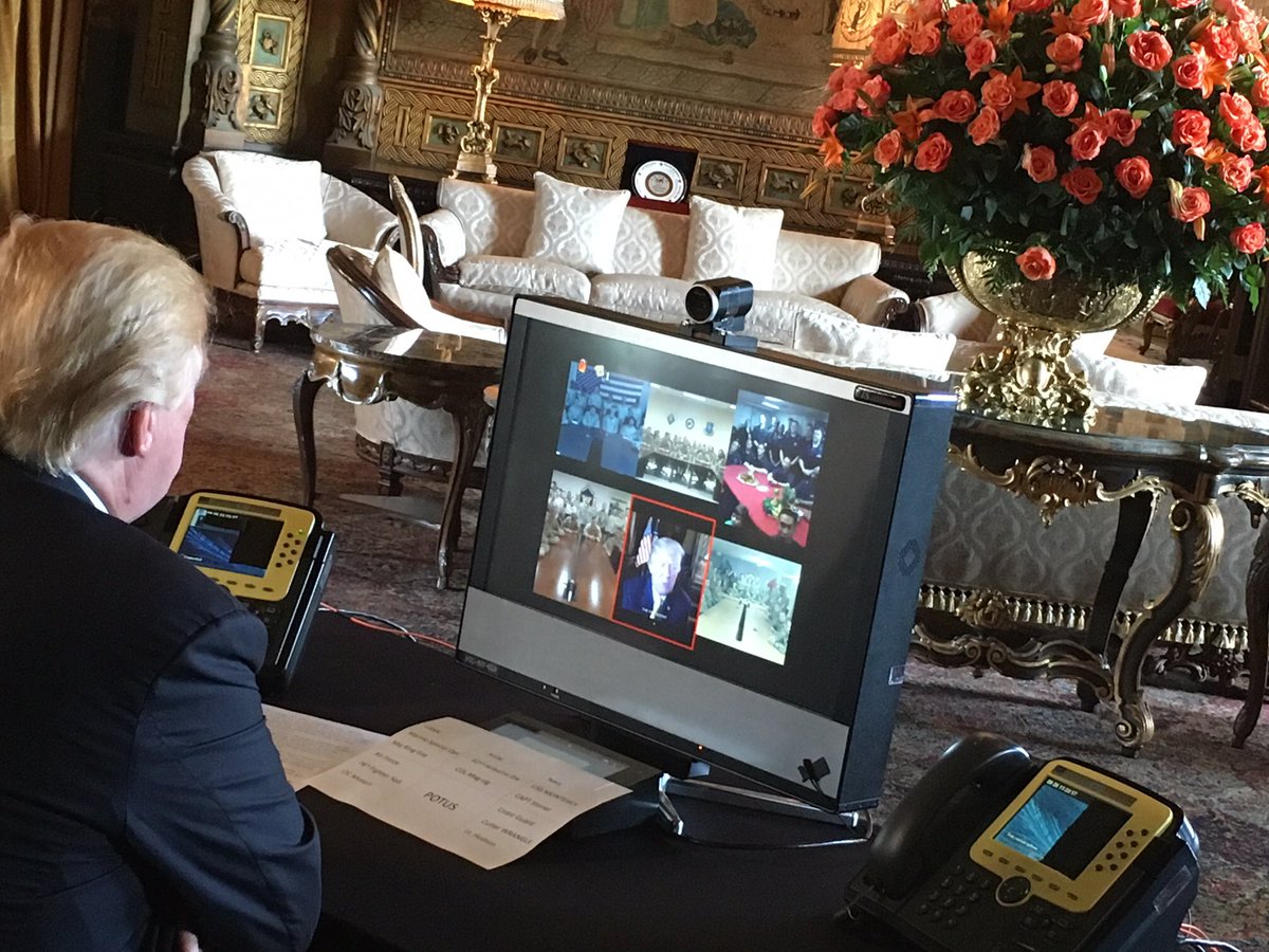 .@POTUS @realDonaldTrump speaks with and offers a special thanks to groups of U.S. Service members via a Thanksgiving Day teleconference Skype call, from the Winter White House in Palm Beach, Florida. #HappyThanksgiving 3️⃣📸 https://instagram.com/p/Bb2TQVAA8jb/  pic.twitter.com/tkWRRV4Tqf