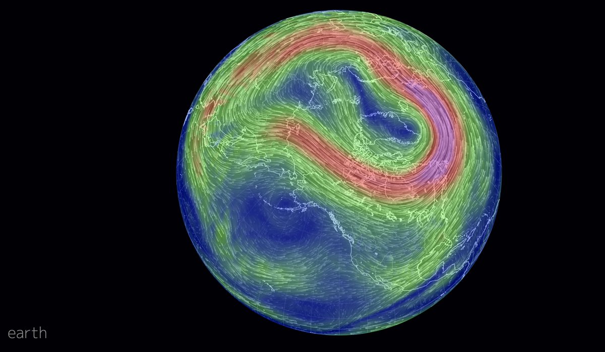 Upper atmosphere currents at the moment. Looks like we restarted the north pole. https://earth.nullschool.net/#current/wind/isobaric/70hPa/orthographic=-130.05,73.15,412 …pic.twitter.com/rdqJWrG3tr