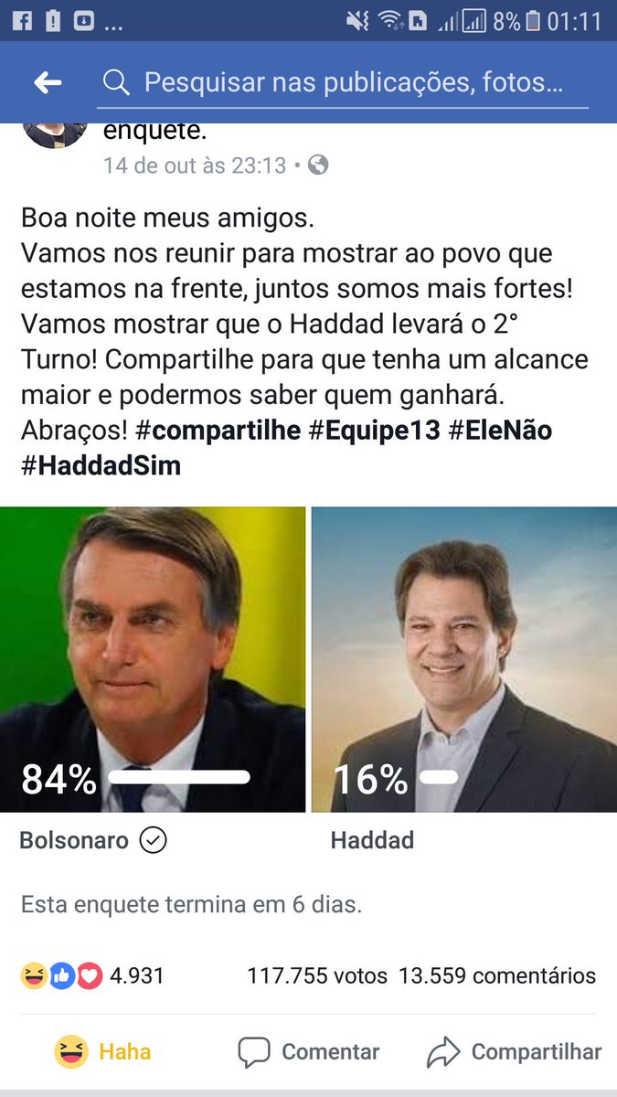 @DaniloGentili da A vice do Haddad está fazendo uma votação na página dela do Facebook https://m.facebook.com/story.php?story_fbid=113846962931329&id=100029180773644 … Está senso massacrada