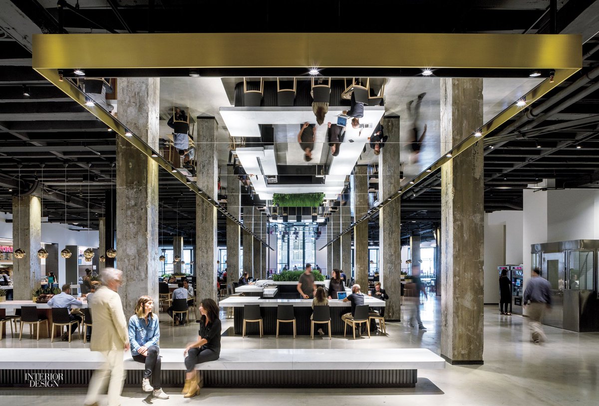 A reflective ceiling and other mirrored objects provide visual variety at Chicago's rebranded Mart Food Hall: http://bit.ly/2keRY4V pic.twitter.com/Vd4sjfmf0I