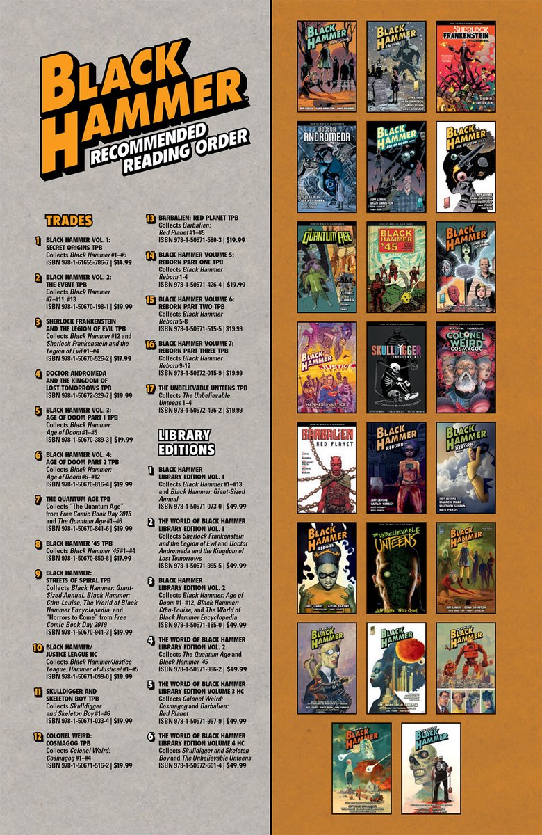 The Black Hammer universe reading order has been updated to include recent volumes--Unbelievable Unteens, Black Hammer: Visions, and more! Details: https://bit.ly/3dfkyiN