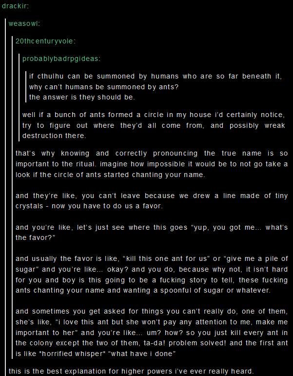 If ants summoned humans like humans summon Cthulhu.