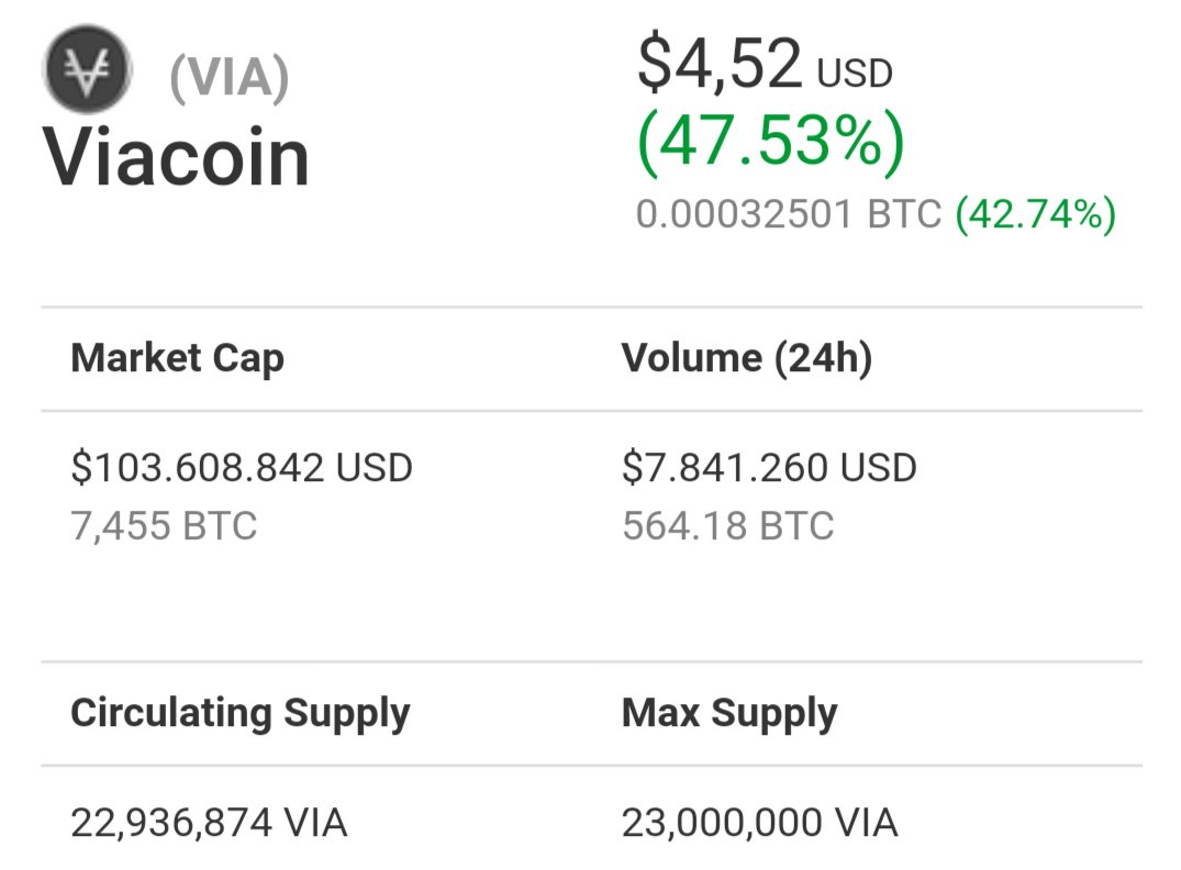 $VIA 100 million dollar market cap. Not bad for a kid who shitposts & mostly solo queued development. But I'm not done. I will continue to code sell walls away.pic.twitter.com/23LDIrvLO6