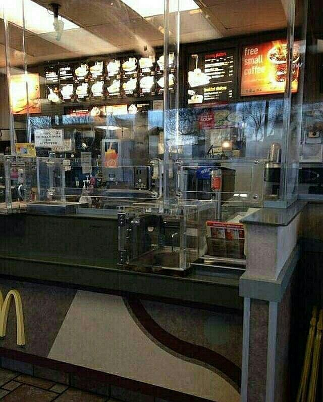 fyi, the shields aren't for the Big Macs, they are to protect the employees from mouth-breathing, maskless neanderthals who lack empathy and the will not to infect and possibly kill their fellow man. Being able to freely spread a killer virus is not being proper.