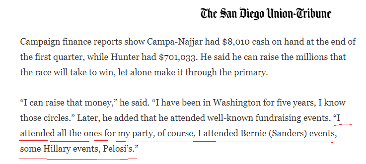 Exact Quote: Later, he added that he attended well-known fundraising events. “I attended all the ones for my party, of course, I attended Bernie (Sanders) events, some Hillary events, Pelosi’s I suppose now you are going to tell me Bernie's PAC never donated to you.pic.twitter.com/DJHrCTMchv