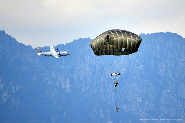 A Paratrooper from the 173rd Airborne Brigade approaches the drop zone in Pordenone, Italy. #MilitaryMondaypic.twitter.com/llxK6eAJmk